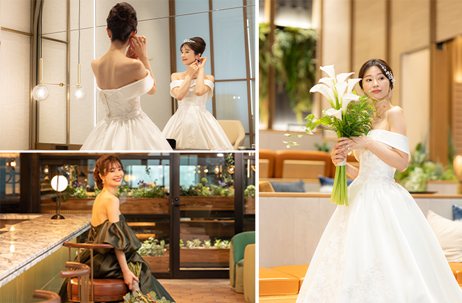会場やお写真に映えるドレスを試着し花嫁体験ができます。