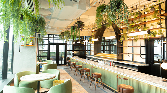 上質さに満ちたパーティ会場は、ゲストにくつろぎの時間をプレゼントできる。ゆったり過ごせる大空間は、料理と会話を楽しむ大人のパーティにふさわしい。ゆとりのあるレイアウトだから会場内は自由に動き回れる。