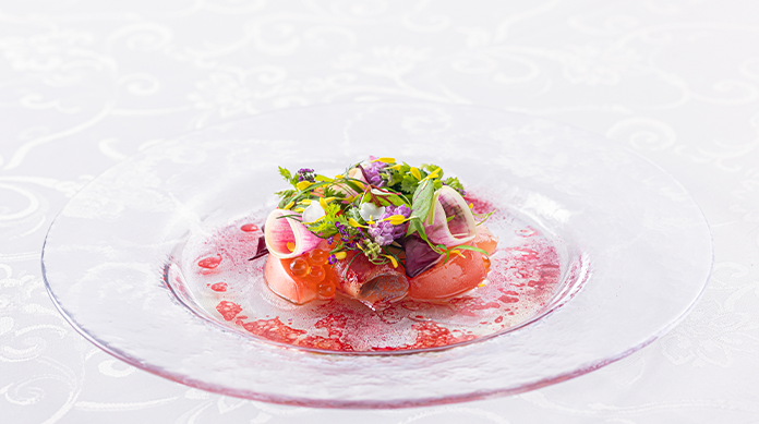 大切なゲストに振る舞うのは、九州の味を知り尽くした深水政信総料理長が手掛ける美食の数々。季節を宿したように旬の味が広がる料理に思わず感動するほど。皿上の色彩や盛り付けも美しく、自然と会話が生まれるはず。
